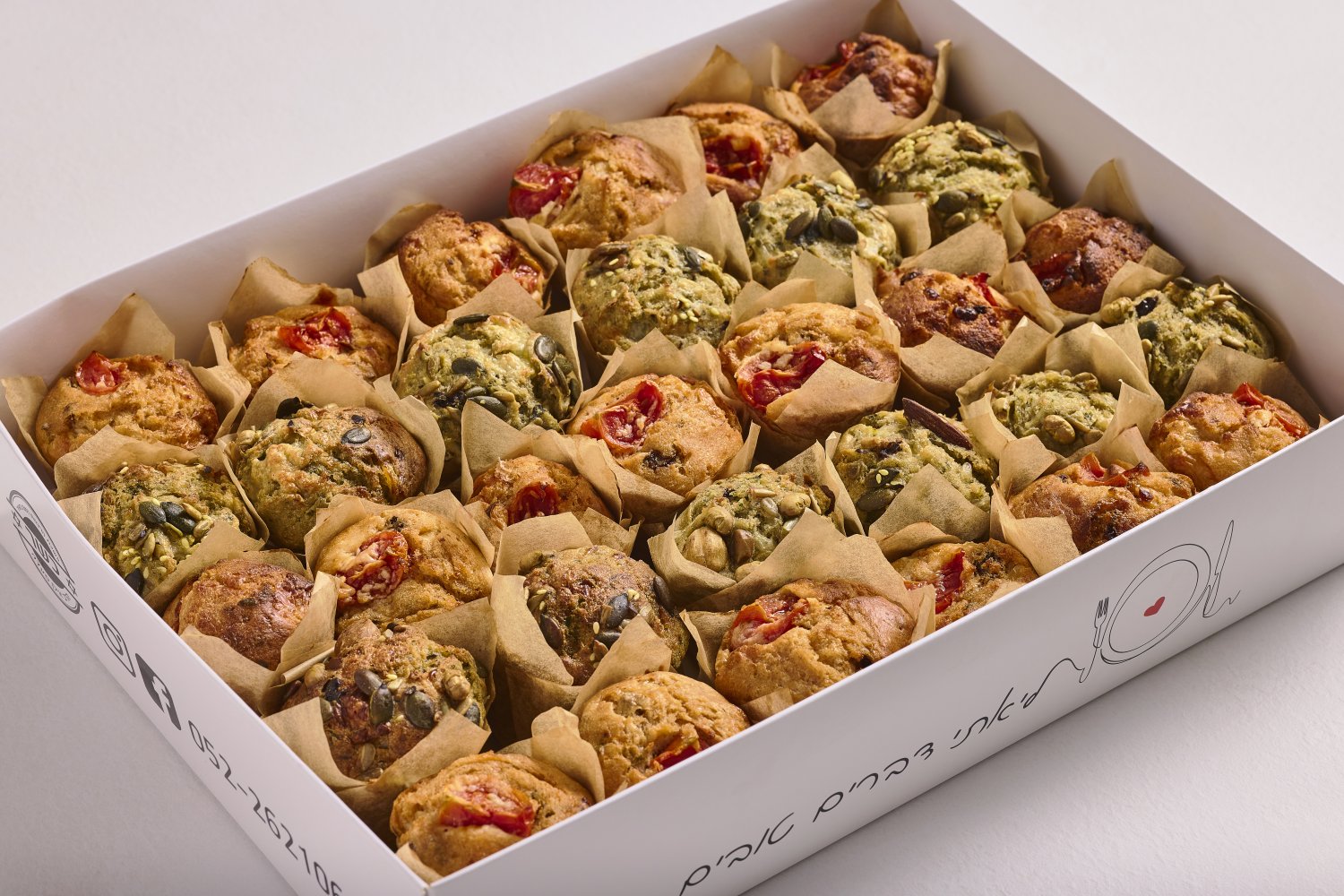 30 יחידות מאפינס גבינות בשני טעמים – זיתים ופסטו, ממרח עגבניות ועגבניות שרי 190 ₪